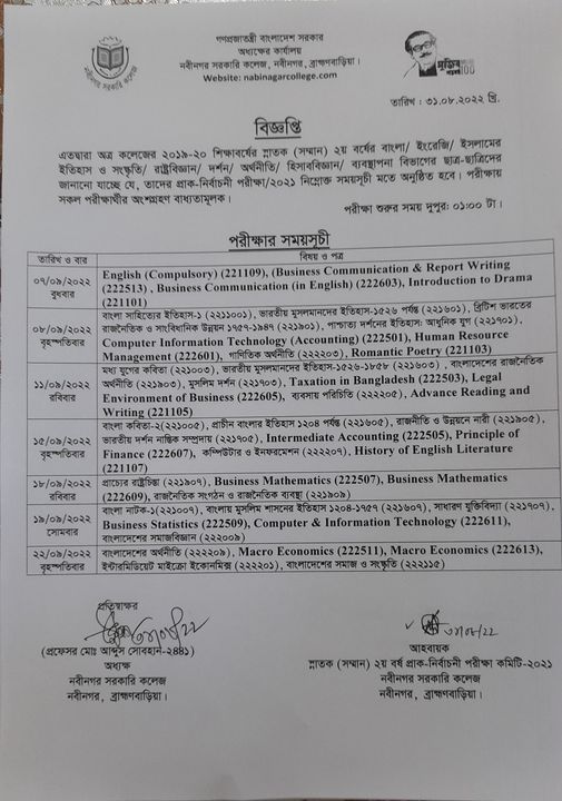 স্নাতক (সম্মান) ২য় বর্ষের প্রাক-নির্বাচনী পরীক্ষাNotices / September 2, 2022 ২০১৯-২০ শিক্ষাবর্ষের স্নাতক (সম্মান) ২য় বর্ষের প্রাক-নির্বাচনী পরীক্ষা নিম্নোক্ত সময়সূচি অনুযায়ী অনুষ্ঠিত হবে।